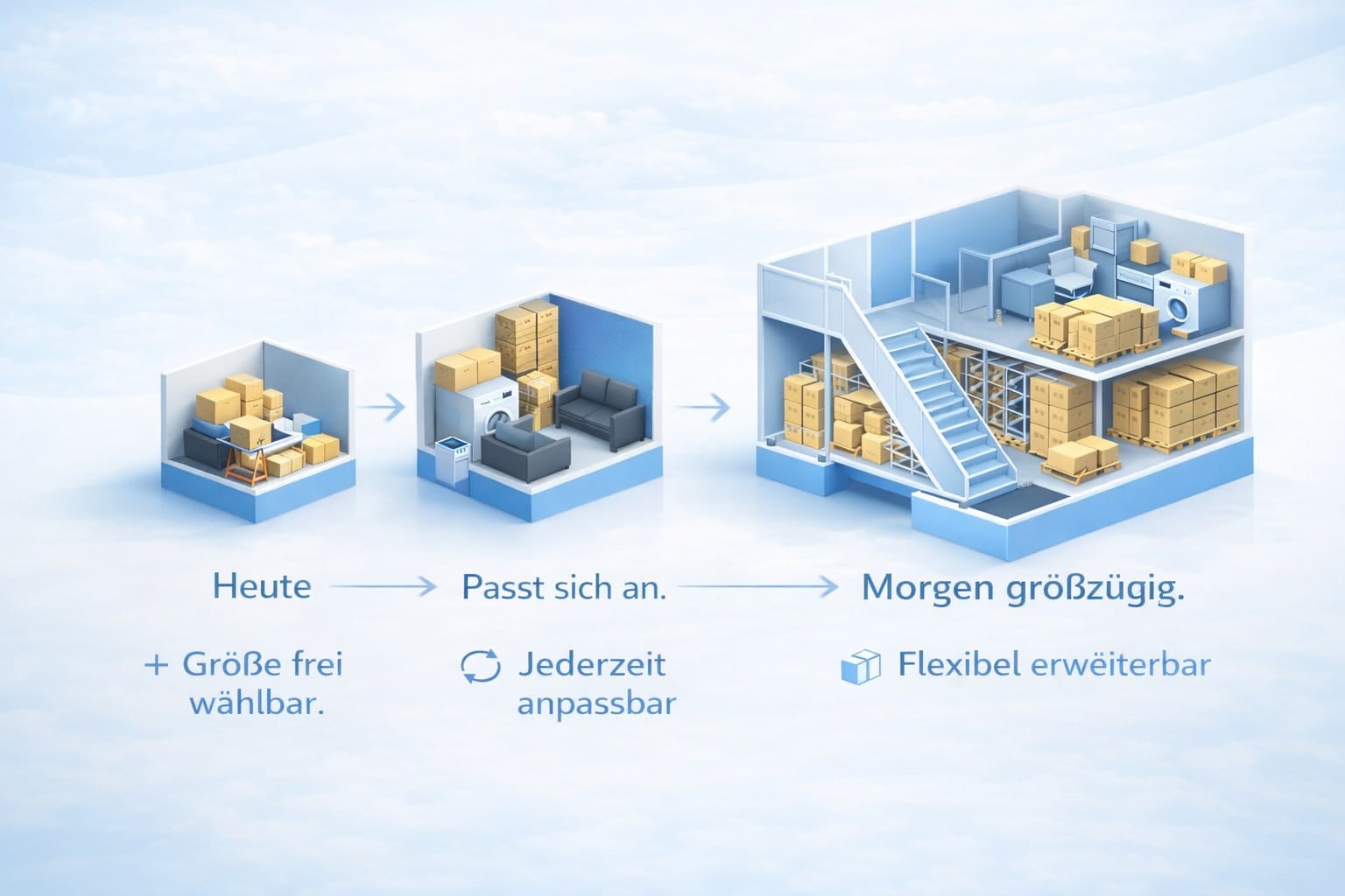 Unsere Selfstorage-Einheiten sind trocken, sauber und videoüberwacht. Dank 24/7-Zugang haben Sie jederzeit Zugriff auf Ihr Eigentum – ganz ohne lange Vertragslaufzeiten. So behalten Sie stets die volle Kontrolle über Ihr Hab und Gut.